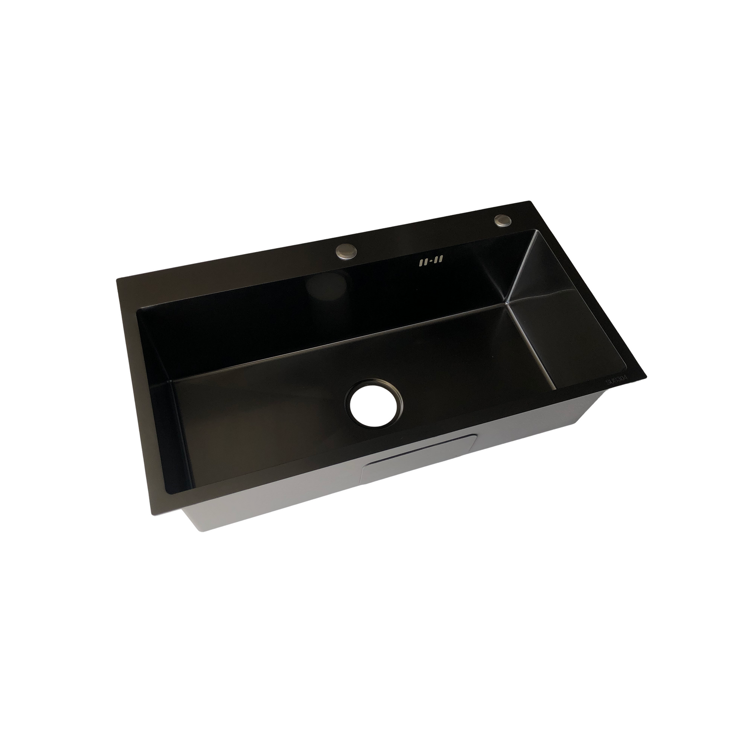 Évier à cuve unique noir encastrable en acier inoxydable avec panier d'égouttement pour cuisine